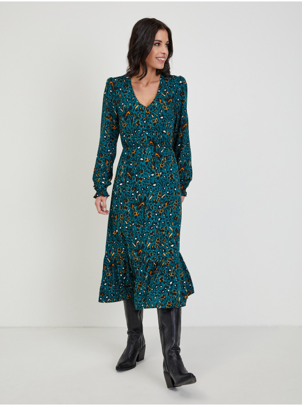 Tmavě zelené dámské vzorované midišaty ORSAY - Dámské