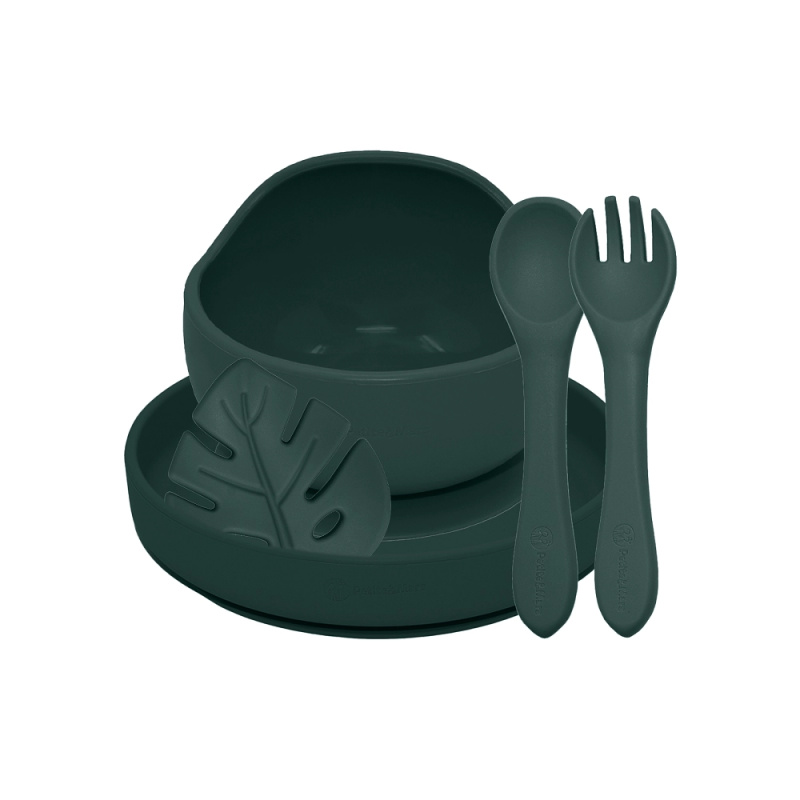 Petite&Mars Set jídelní silikonový TAKE&MATCH 2 ks talíř + příbor Misty Green 6m+