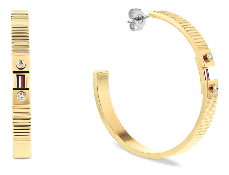 Tommy Hilfiger Úchvatné pozlacené kruhy s krystaly Stripes 2781050