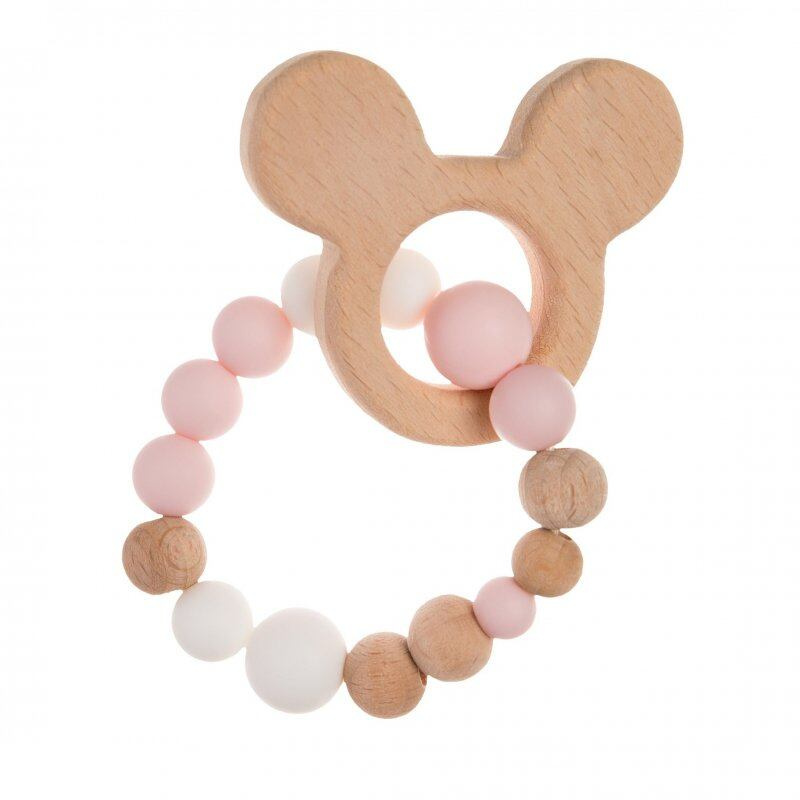 BocioLand Silikonové, dřevěné kousátko Liška - růžové