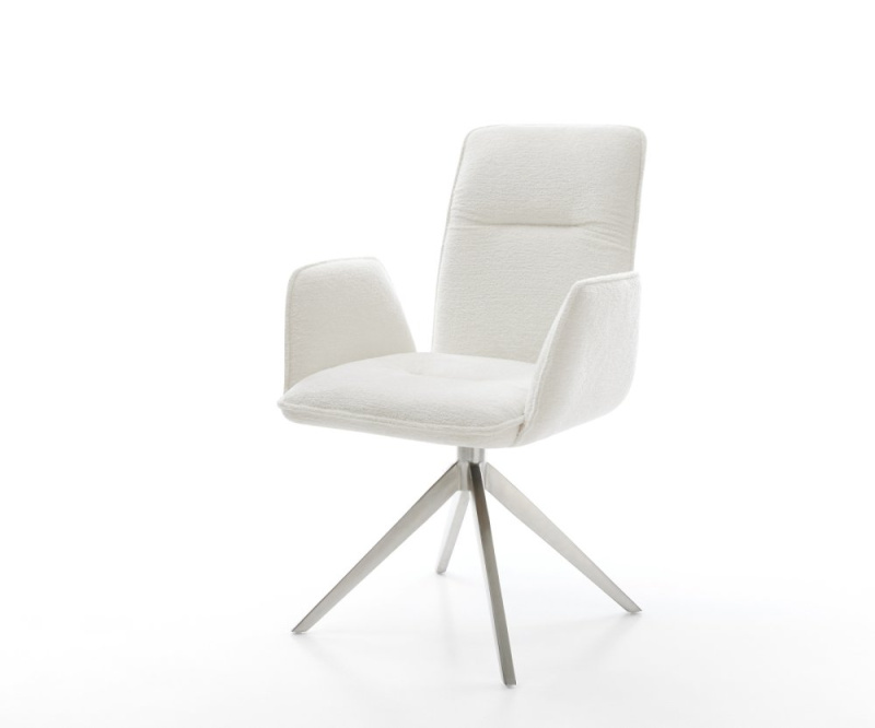 Jídelní židle Alja-Flex s područkami bouclé měkký béžová 4-nohá zúžená