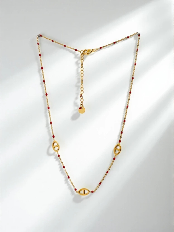 Zlatý náhrdelník Perla Aurelia s červenými korálky