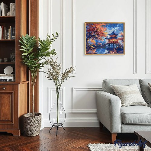 Figured ART Malování podle čísel - PAGODA ZA PODZIMNÍ NOCI na rámu 40 x 50 cm