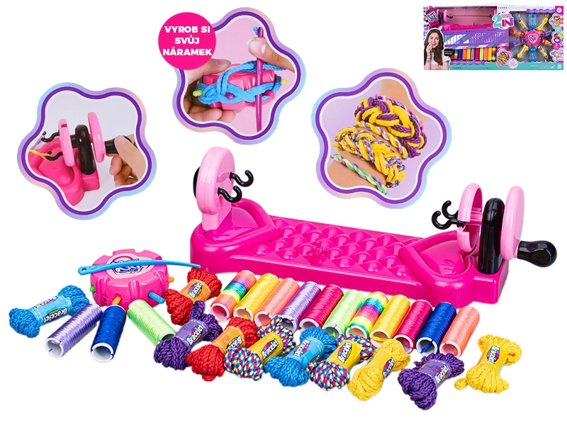 Sada na pletení náramků s pletacím stavem a provázky