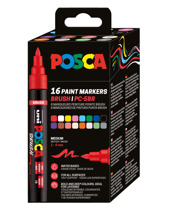 Sada štětcových popisovačů POSCA - PC-5BR, 1 - 4 mm, mix barev - 16 ks