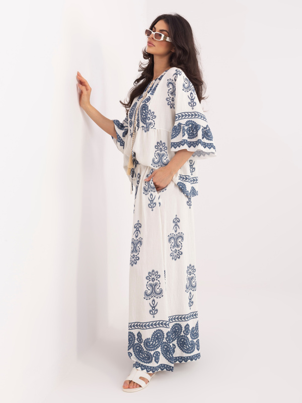 Modrý letní komplet se širokými kalhotami