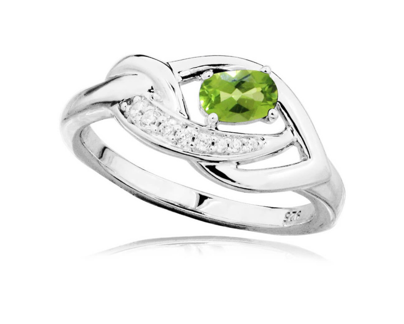 MOISS Luxusní stříbrný prsten s olivínem a zirkony RG0000 55 mm