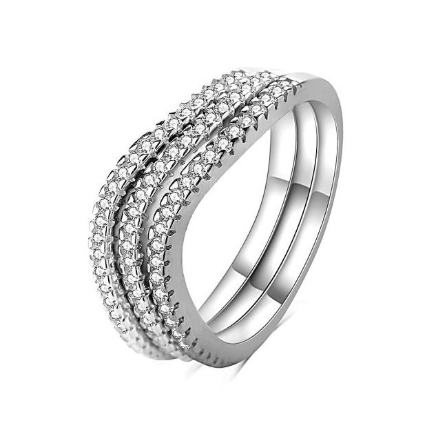 MOISS Trojitý stříbrný prsten se zirkony R00023 54 mm