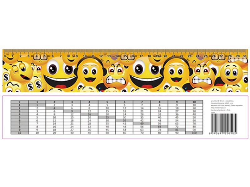 Pravítko 3D 30cm s násobilkou - Emoji