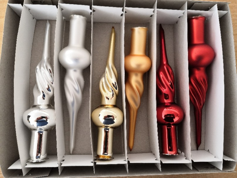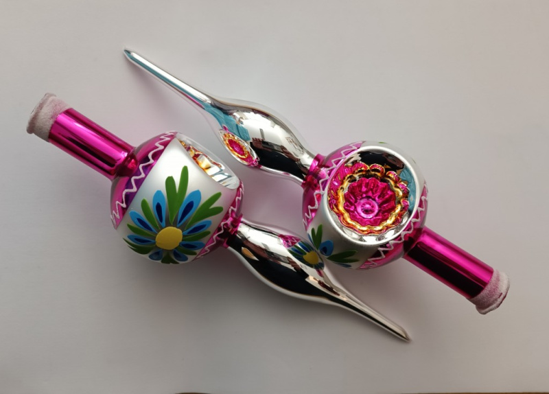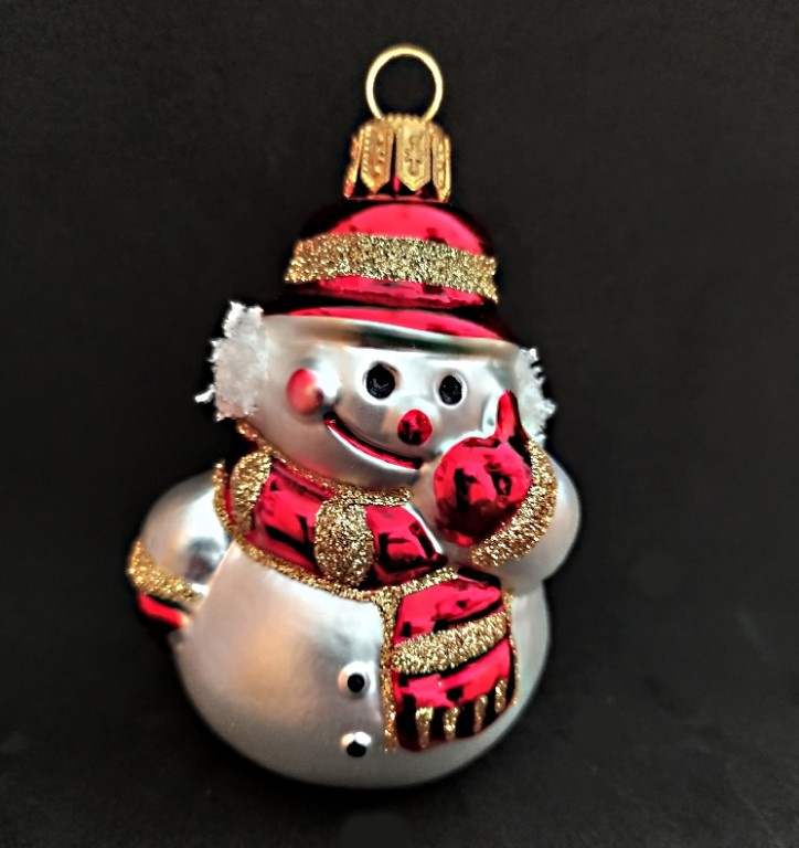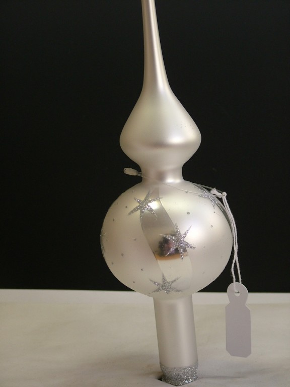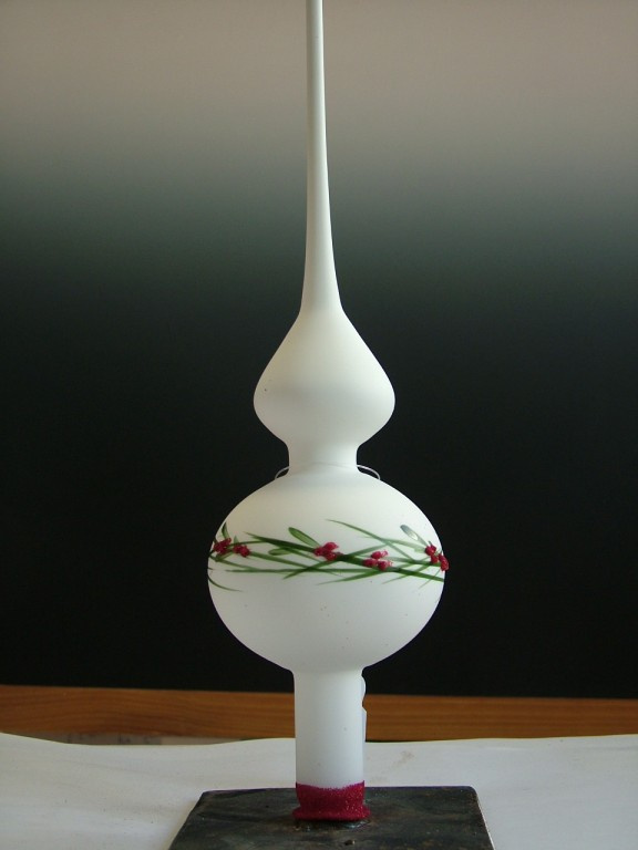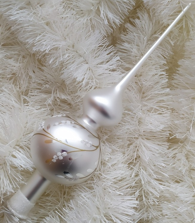 Vánoční skleněná špice, 1-kulová, hladká, mat/lesk, bílý dekor