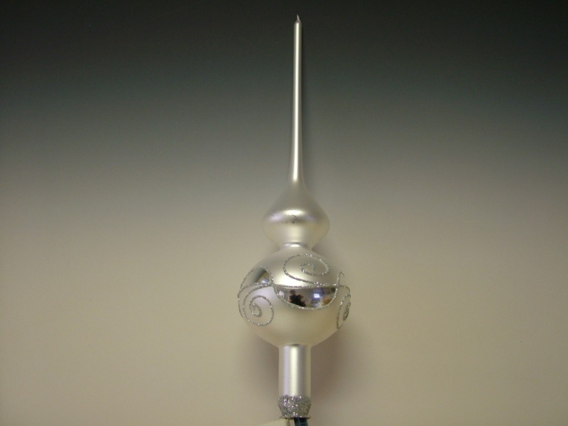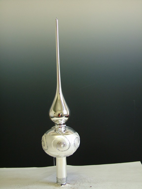 Vánoční skleněná špice, 1-kulová, stříbrná, lesk, dekor