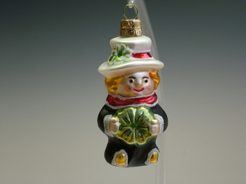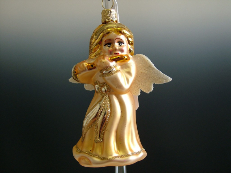 Vánoční skleněná ozdoba - Anděl s flétnou velký, zlatý, mat, dekor