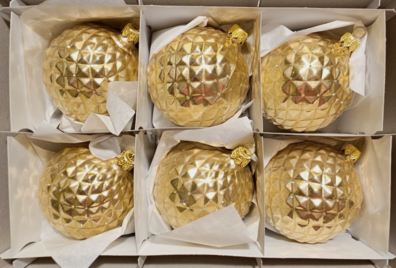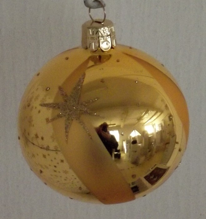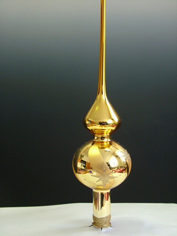 Vánoční skleněná špice, 1-kulová, zlatá, lesk, dekor