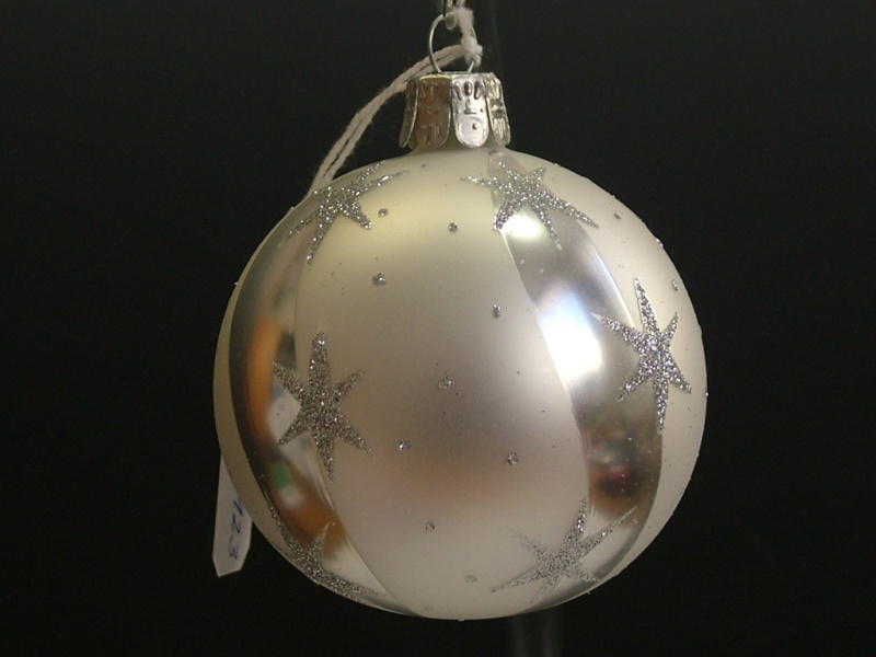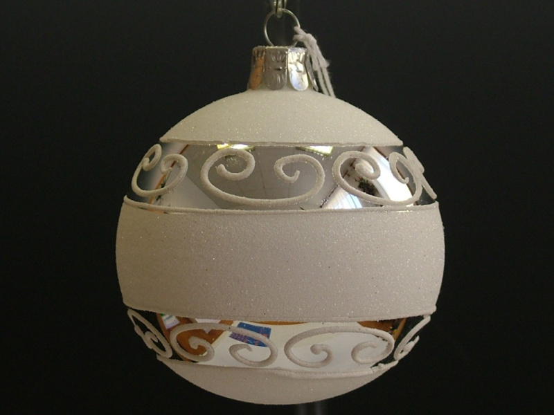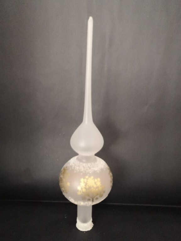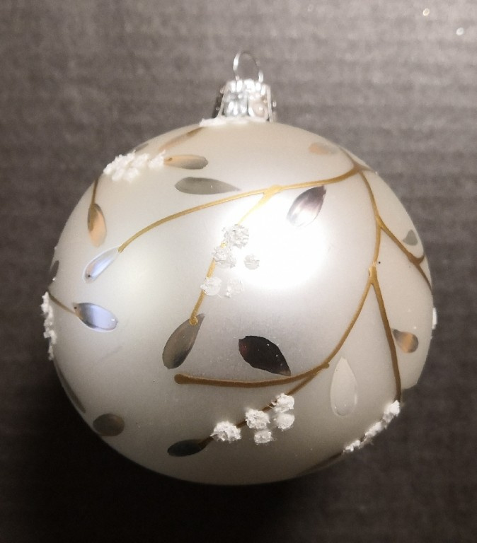 Vánoční skleněná špice, 1-kulová, bílá, mat, dekor
