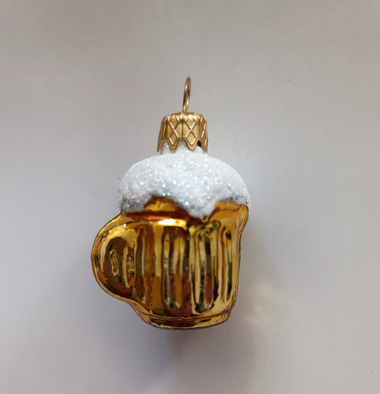 Vánoční skleněná ozdoba - minifigurka - Sklenice piva
