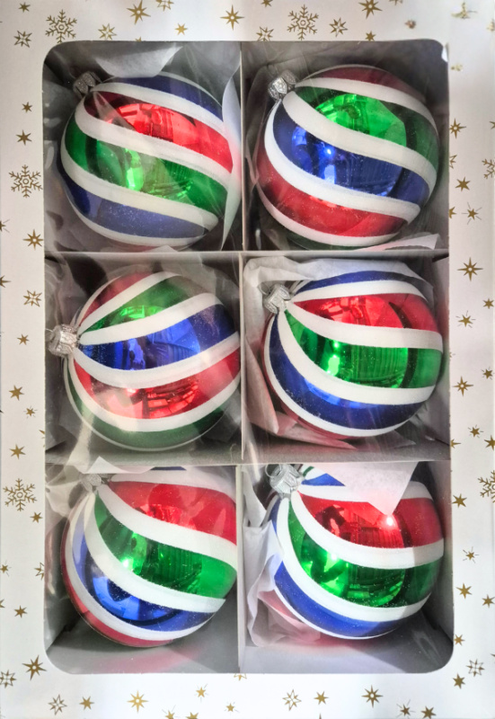 Vánoční skleněné koule 7cm, hladké, barevné, lesk/mat, dekor, 6ks