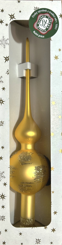 Vánoční skleněná špice, 1-kulová, zlatá, mat, sypaný dekor
