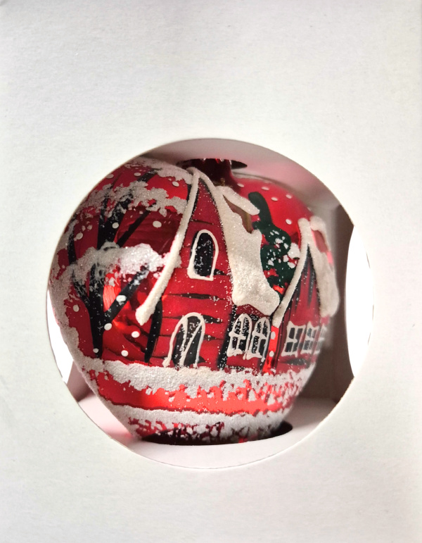 Vánoční srdce velké skleněné, červený lesk, zimní motiv