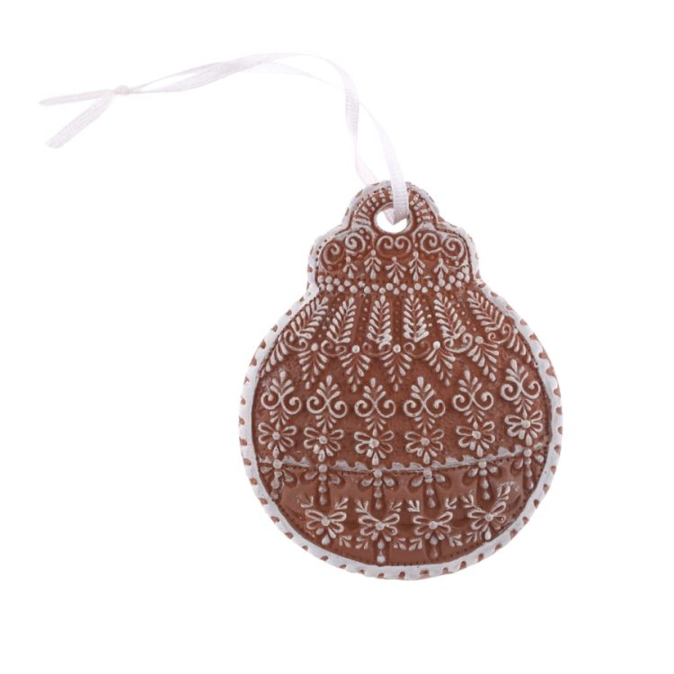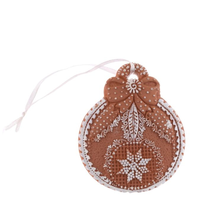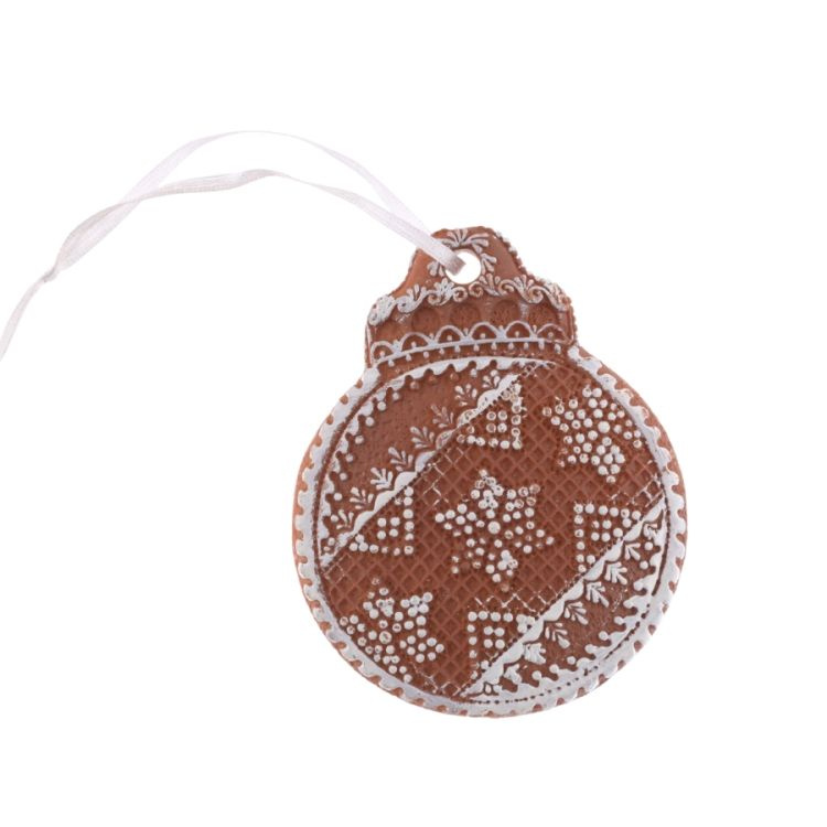 Závěs Baňka perníková zdobená 9,5cm, polyresin