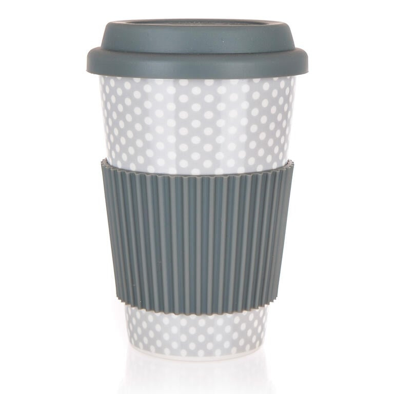 Hrnek keramický se silikonovým víčkem GO, 400 ml, šedý