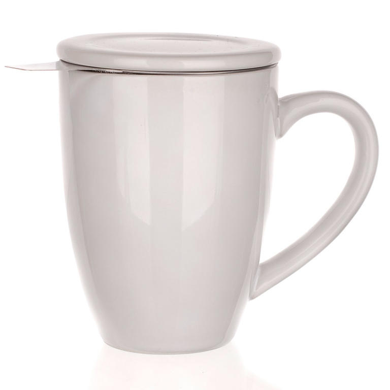 Banquet Keramický hrnek s víčkem a nerezovým sítkem BONNET 350 ml bílý