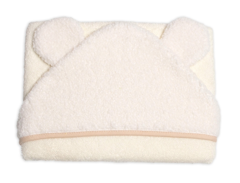 Baby Nellys Kojenecká osuška s kapucí a oušky Boucle 80x80cm, froté - smetanová