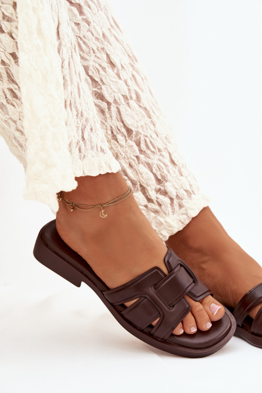 Dámské hnědé pantofle s přezkami Oliena