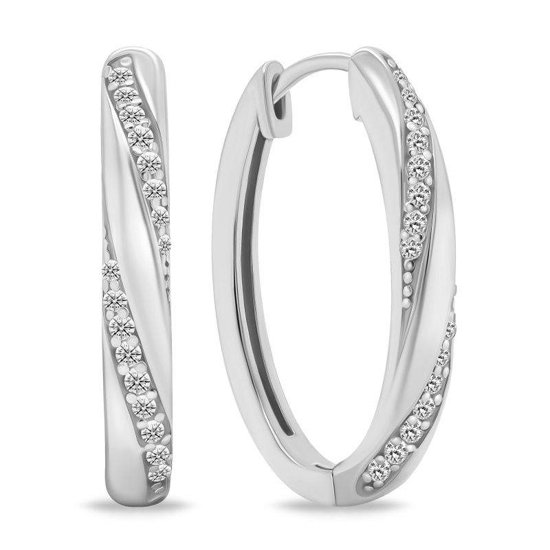 Brilio Silver Slušivé stříbrné oválné náušnice s čirými zirkony EA661W
