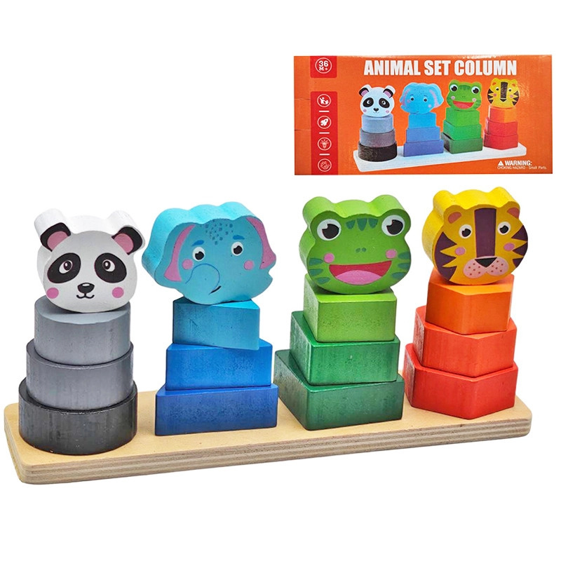 Dřevěná pyramidová skládačka zvířátka