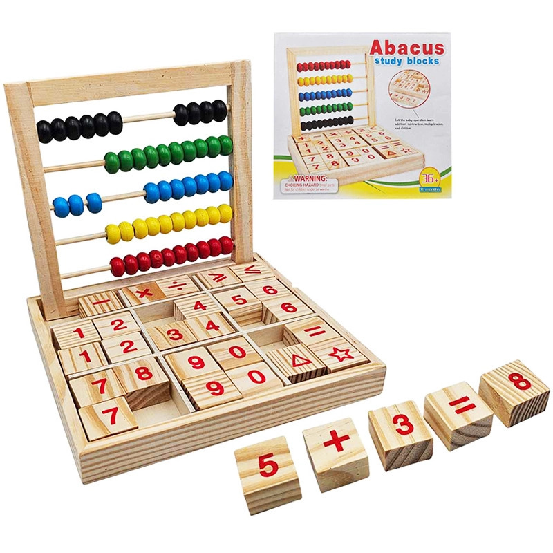 Dřevěné počítadlo s číselnými kostkami