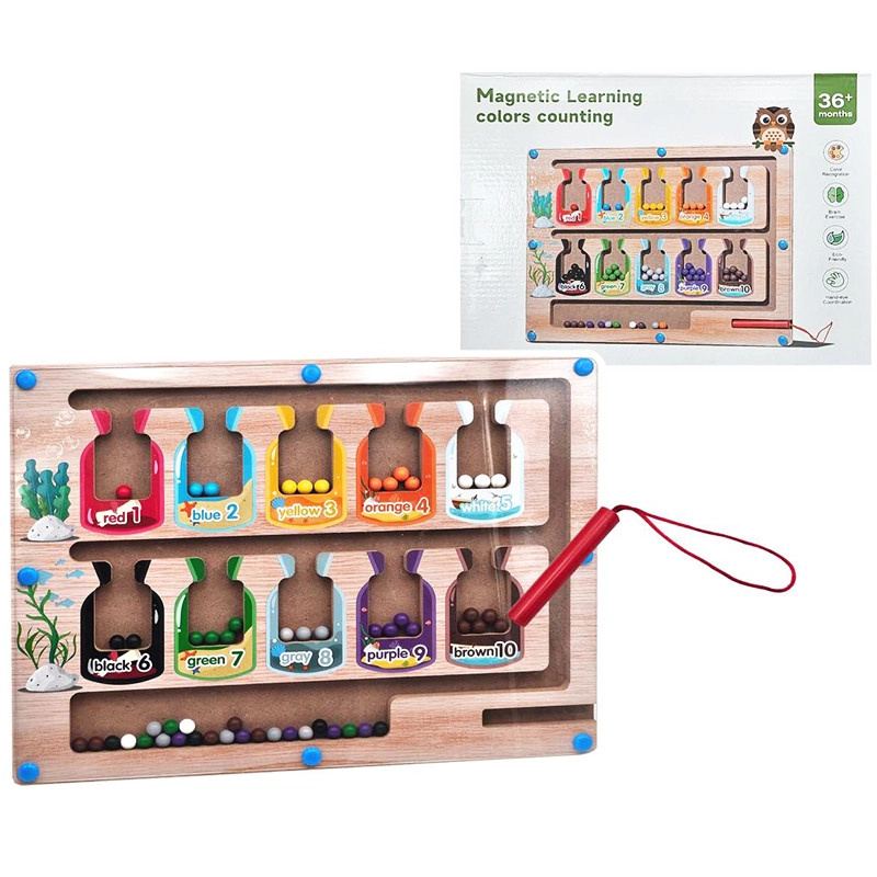 Dřevěná naučná tabule s magnetickými puzzle