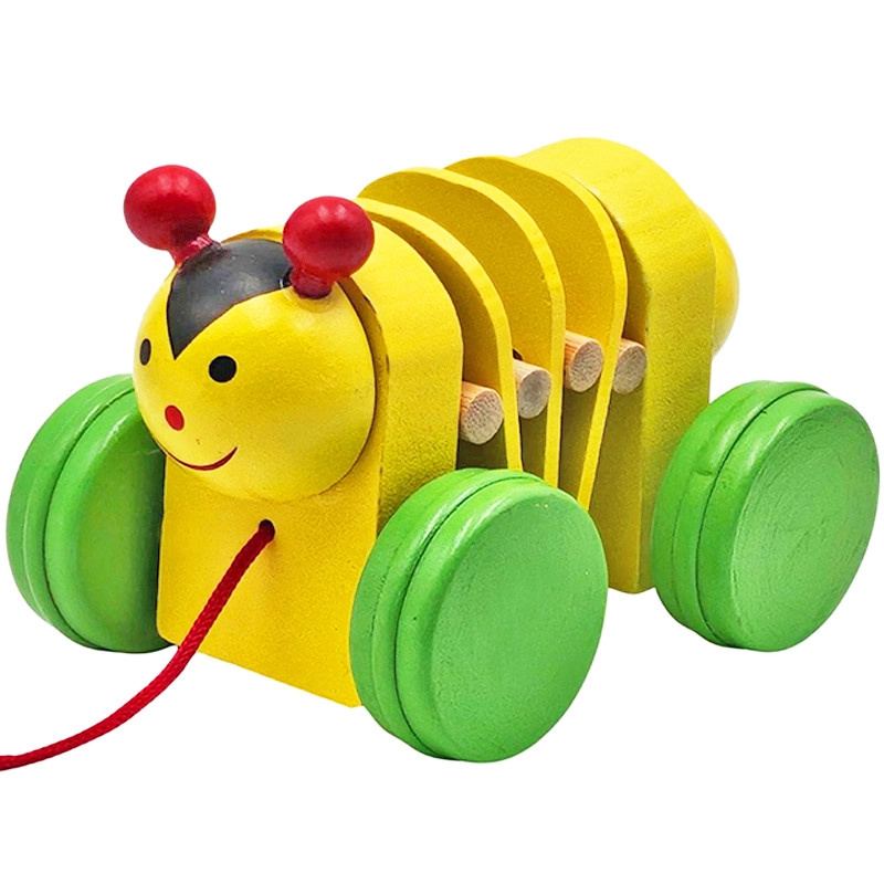 Dřevěný brouček na kolečkách s provázkem