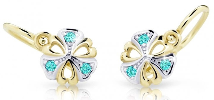 Cutie Jewellery Dětské bicolor náušnice ze žlutého zlata C2230-10-X-1 světle zelená