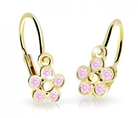 Cutie Jewellery Dětské kytičkové náušnice ze žlutého zlata C2744-10-X-1 růžová