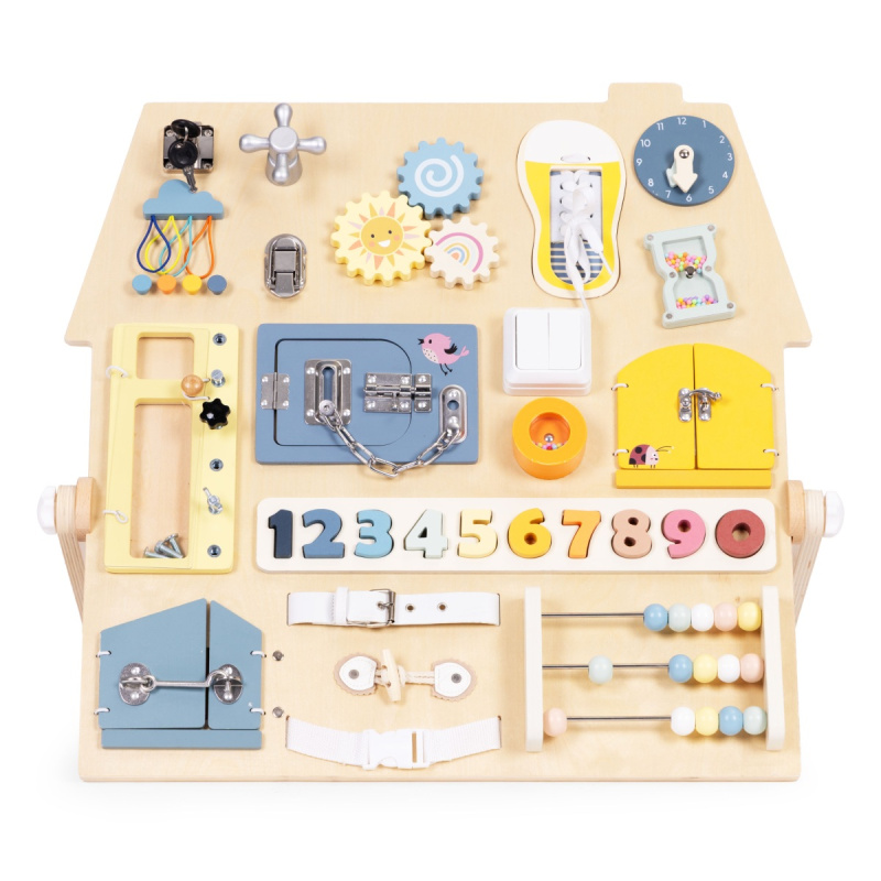 EcoToys Velká dřevěná montesori senzorická tabule pro děti, vzdělávací panel XL