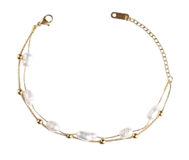 Emily Westwood Pozlacený dvojitý náramek s pravými perlami EWB250244G