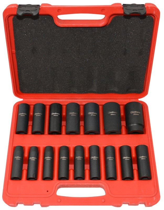 Sada průmyslových kovaných - úderových hlavic 1/2", 10-32 mm, 16 ks - Genborx