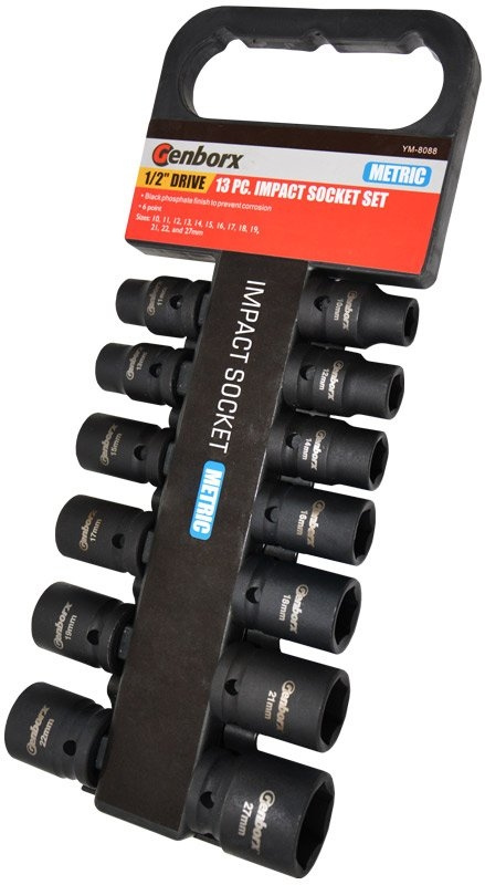 Genborx Nástrčné hlavice úderové 1/2", 10-27 mm, 13 ks - YM-8088