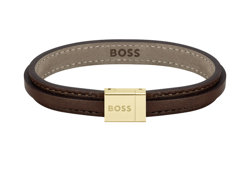 Hugo Boss Hnědý kožený náramek pro muže Grover 1580329 17,5 cm
