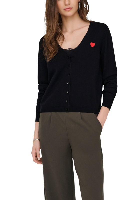 Černý cardigan s červeným srdcem