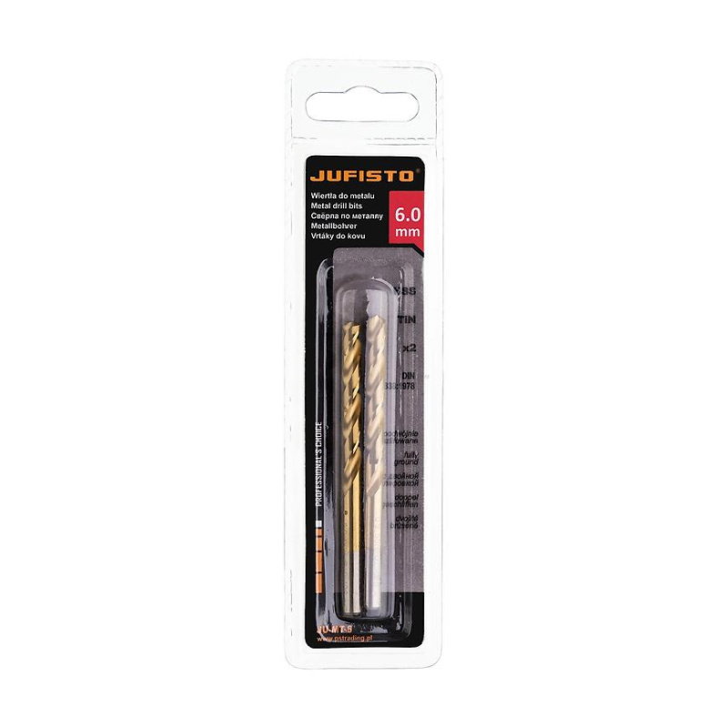 Vrtáky kov, dvojité broušené, titanové, 6,0 mm, bal 2 ks, Jufisto
