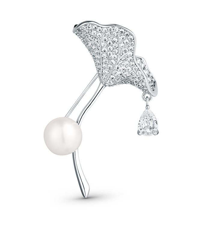 JwL Luxury Pearls Třpytivá brož 2v1 s krystaly a pravou perlou Ginkgo JL0838