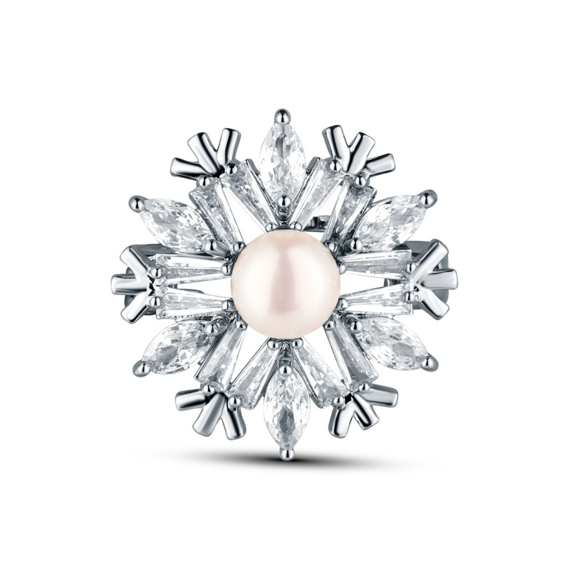 JwL Luxury Pearls Okouzlující brož ve tvaru sněhové vločky s perlou JL0874