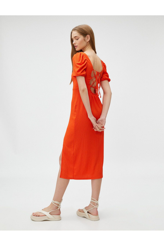 Koton Čtvercový výstřih Balonový rukáv Rozparek Midi šaty