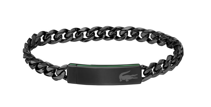 Lacoste Pánský černý náramek z oceli Backhand 2040441