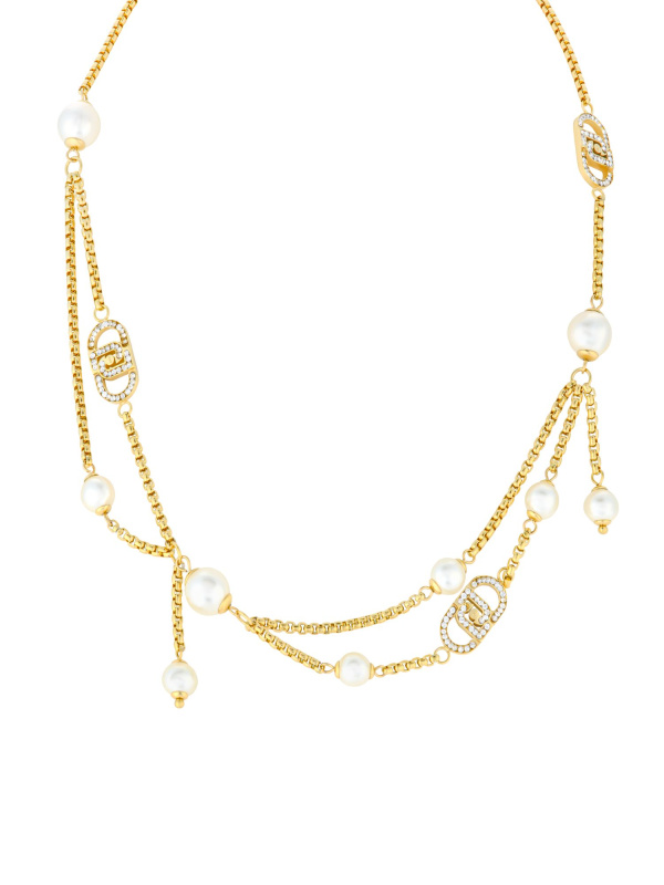 Liu Jo Dvojitý pozlacený náhrdelník se syntetickou perlou LJ2802