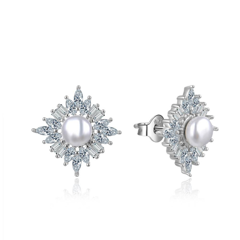 MOISS Nádherné stříbrné náušnice s perlami a zirkony E0003120