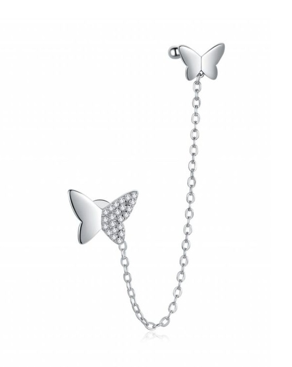 MOISS Dvojité stříbrné náušnice s motýlkem E0004280