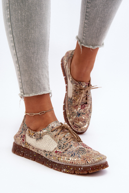 Kožené Vzorované Kotníkové Boty Na Ploché Podpatky Maciejka