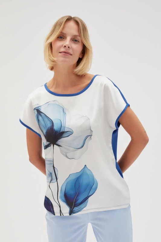 Marisse Cotton Blouse With Print, White